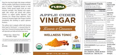 - Enjoy the crisp tang of apple cider vinegar combined with the complex earthy flavor of cinnamon and the spice of turmeric. Thoughtfully brewed in small batches freshly ground organic herbs are water extracted overnight then blended with organic apple cider vinegar and infused with organic turmeric—to support healthy digestion—and cinnamon for a deeper flavor experience. Flora’s Turmeric & Cinnamon Apple Cider Vinegar is bottled immediately after blending to capture optimum freshness.This wellness tonic is uniquely crafted with cleansing herbs found in Flor-Essence a renowned detox formula. Flora’s Turmeric & Cinnamon Apple Cider Vinegar will rejuvenate your body and enliven your senses. Caffeine-free + gluten-freeNon-GMO Vegan Kosher Check Wellness tonic 5 (100 mL) shots