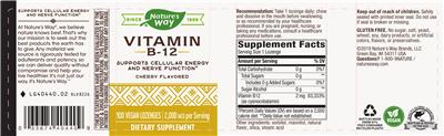 - Supports cellular energy and nerve function Vitamin B-12 2000 mcg per serving Gluten free. No sugar salt yeast wheat soy dairy products or artificial colors flavors or preservatives. Vegan