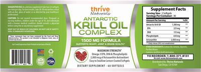 - Antarctic Krill Oil Complex 1500 mg formula Supports heart joint & brain healthMaximum strength Omega-3 EPA DHA & Phospholipids2000 mcg of Astaxanthin antioxidant Easy to swallow lemon-coated softgels