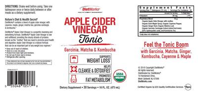 - DietWorks contains a blend of apple cider vinegar with cayenne maple ginger matcha tea garcinia cambogia & kombucha. DietWorks Apple Cider Vinegar is a powerful cleansing and detoxifying formula. DietWorks Apple Cider Vinegar is raw and unfiltered providing the cloudy strands of proteins known as the 'mother' that you need to promote good health and digestion. Apple Cider Vinegar is a natural formula that can be an important part of any weight loss regimen. Healthy weight management Garcinia matcha & kombucha Feel the tonic boom with garcinia matcha ginger kombucha cayenne & maple
