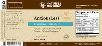 - Increase your confidence. Support a healthy mood. Reduce fatigue. AnxiousLess features Sceletium tortuosum plus I-theanine magnesium thiamin and zinc to give you non-drowsy relief. Situational stress reliefRelieves occasional anxiousnessIncreases calm and confidence