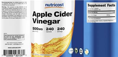 - Apple Cider Vinegar 500mg per serving Vegetarian product Non GMOGluten free product