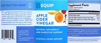 - Feed what you needPaleo friendly 100% whole foods Equip ACV provides a portable mess-free way to easily include this celebrated elixir into your daily dietary routine.