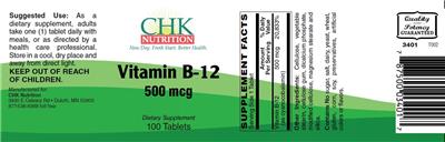 | Vitamin B12 | vitamin | 500 | mcg | 20833 | Adults and children 4 or more years of age | 1 Tablet(s) |