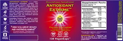 - Eco Facility Vegan ethics Antioxidant Extreme is a unique full-spectrum antioxidant complex that features organic turmeric (both whole root and extract). Turmeric is a highly-celebrated ancient Ayurvedic powerhouse valued for its wide range of uses. Antioxidant Extreme offers diverse power packed antioxidants (both fat and water soluble) such as green tea extract maqui berry açai and resveratrol (sourced from Japanese Knotweed).Antioxidant Extreme also includes a unique blend of the supportive Herbal Antioxidant Activators cinnamon bark peppermint leaf black pepper and ginger root. Full-spectrum complexTurmericGreen TeaGrape seedSuper fruits GF Certified Gluten-free OU Pareve (Kosher)