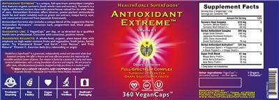 - Antioxidant Extreme is a unique full-spectrum antioxidant complex that features organic turmeric (both whole root and extract). Turmeric is a highly-celebrated ancient Ayurvedic powerhouse valued for its wide range of uses. Antioxidant Extreme offers diverse power packed antioxidants (both fat and water soluble) such as green tea extract maqui berry açai and resveratrol (sourced from Japanese Knotweed).Antioxidant Extreme also includes a unique blend of the supportive Herbal Antioxidant Activators cinnamon bark peppermint leaf black pepper and ginger root. Eco facility Vegan ethics Full-Spectrum ComplexTurmericGreen TeaGrape seedSuper fruits OU Pareve (Kosher) GF Certified Gluten-free