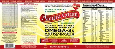 - Why Is Anutra(R) Better Than Fish Oil & Flax?• Anutra Grain’s Nutritional Profile is far superior to any other whole food plant or animal• Anutra(R) has 50% more usable protein than flax • 70% more fiber than flax• Comparable protein to fish beef chicken or pork• 6X more calcium than milk• More antioxidents than cultivated blueberries• Anutra(R) has a neutral taste and digests beautifully with no side effects like fish oil and flax• Anutra(R) (Salvia hispanica L.) is FDA classified as a regular food; fish oil and flax are not• Anutra(R) has a unique gelling property that works well in recipes• Anutra(R) contains L Argininea vasodilator that reduces blood pressure• Anutra(R) contains phyto-tryptophan that reduces appetite• Anutra(R) produces tailor made DHA & EPA unlike fish oil or algae• Anutra(R) regenerates healthier cells• Anutra(R) is the World’s most sustainable source of Omega-3s• Whole flax inherently contains cyanide that is life threatening• Flax is a thyroid and Vitamin B interrupter that may cause poor health major birth defects miscarriage or premature birth ANUTRA(R) vs. FISH OIL & FLAXSERVING SIZE: 15g ANUTRA(R) FISH OIL FLAXProtein (usable) 2.7g 0 1.8gCarbohydrates 5g 0 6gDietary Fiber 5g 0 3gCholesterol 0g 85mg 0Omega-3 (ALA) 3000mg 3000mg 3000mgPhyto Tryptophan 60mg 0 45mgORAC (Antioxidants) 75 per g 0 61 per gVitamin E 764mcg 0 18mcgB Vitamins 2146mcg 0 784mcgVitamin C <375mcg 0 75mcgVitamin A <3 IU 15000 IU 0Calcium 78mg 0 30mgSelenium 11mcg 0 4mcgManganese 342mcg 0 30mcgChromium 11mcg 0 0Iron 1007mcg 0 750mcgCopper 240mcg 0 150mcgVitamin B Interrupter NO NO YESThyroid Interrupter NO NO YESFDA Food Classified YES NO NOSource for Anutra\(R) : Microbac LabsSource for fish oil: (USDA SR21) flax: (USDA SR19)ALSO BETTER THAN SOY HEMP & WHEAT GERM WORLD'S HEALTHIEST WHOLE FOOD(TM)