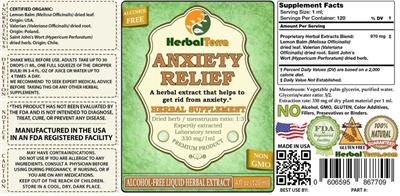 - Manufactured in the USA in an FDA registered facility Alcohol free A herbal extract that helps to get rid from anxiety. Dried herb/menstruum ratio: 1:3Expertly extractedLaboratory tested330 mg/1 mLPremium productAlcohol-free liquid herbal extract Non GMO No artificial ingredients GMO gluten color additives fillers preservatives or binders.Natural Gluten Free