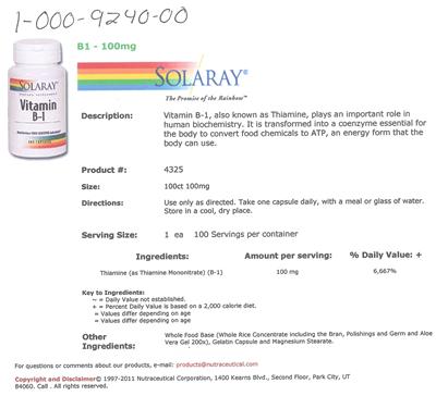 - Call. Description: Vitamin B-1 also known as Thiamine plays an important role in human biochemistry. It is transformed into a coenzyme essential for the body to convert food chemicals to ATP an energy form that the body can use. Product # 4325 Size: 100ct 100mg
