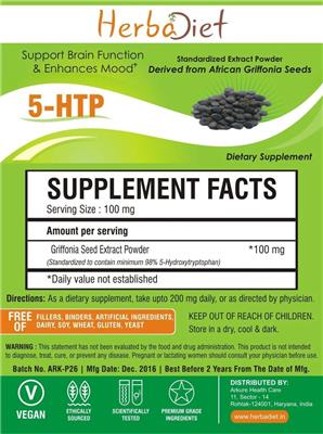 - Supports Brain Function & Enhances Mood Free of fillers binders artificial ingredients dairy soy wheat gluten yeast V Vegan Ethically SourcedScientifically TestedPremium Grade Ingredients Standardized Extract PowderDerived from African Griffonia Seeds