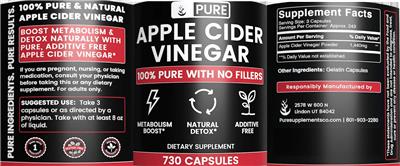 - Pure ingredients. Pure results. 100% Pure & natural apple cider vinegar Boost metabolism & detox naturally with pure additive free apple cider vinegar Gluten free Non-GMO ingredients 100% pure with no fillers