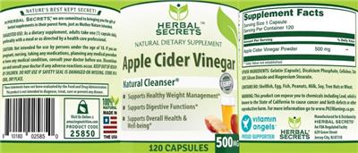 | Apple Cider Vinegar powder | botanical | 500 | mg | N/A | Adults and children 4 or more years of age | 1 Capsule(s) |