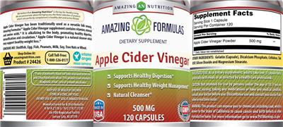- Amazing Formulas Apple Cider Vinegar supplement contains vitamins mineral and amino acids. It is alkalizing to the body promoting healthy digestion detoxification and circulation. Apple Cider Vinegar is a natural cleanser which may support healthy weight loss. Contains No: Shellfish egg fish peanuts milk soy tree nuts or wheat. Supports healthy digestionSupports healthy weight managementNatural cleanserMade In USA