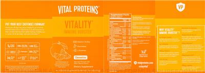 - Put your best (defense) forwardHaving an off day? Say yes to Vitality our immune booster that's rich in vitamins A C D B12 and zinc to help combat that less-than-stellar feeling. A better you is a pour stir & sip away. Just add cold water.5g collagen peptides200% daily value Vitamin B121000 mg of Vitamin CL-Arginine & L-GlutamineElectrolytes200% daily value of zincPer serving Gluten free Grass fed + pasture raised Vitamin C & ZincElectrolytesL-Glutamine Clementine naturally flavored with other natural flavors Made with Bovine Collagen PeptidesWhy Vitality Immune Booster?5g Collagen PeptidesContains key amino acids which help regulate immune response2g L-GlutamineSupports glutathione synthesis the body's master antioxidant1000 mg Vitamin CEssential in supporting a healthy immune system and helps boost the production of collagen200% DV ZincCrucial to the immune system and helps support antioxidant protectionElectrolytes for hydrationBoosts hydration to support the immune systemVitamins B3 B6 B12 & DPlay a major role in making sure the body's cells including immune cells function properly250 mg WellmuneA beta glucan that is absorbed in the body by immune cells and helps improve general immune health without overstimulating the immune system50 mg immuno-LP20Enhances immune function by sparking the production of cells directly involved in the immune defense in the small intestines500 mg L-ArginineAmino acid that helps support a healthy immune system