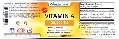 - Non-GMOGluten Free Natural Vitamin A 7500 mcg (25000 IU) Supports healthy immune functionSupports healthy eye health