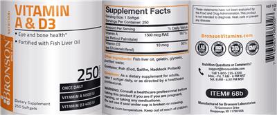 - Eye and bone health Fortified with fish liver oil 250 count Vitamin A 5000 IUVitamin D3 400 IU Lab testedMade from high quality ingredients