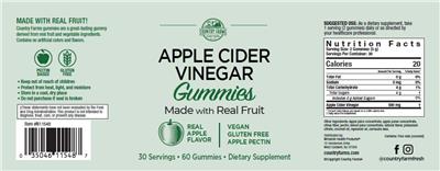 - Made with real fruit!Country Farms gummies are a great-tasting gummy derived from real fruit and vegetable ingredients. Contains no artificial colors and flavors. Pectin based Gluten free Apple pectin