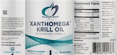 - XanthOmega is an extract from Antarctic krill containing highly unsaturated EPA and DHA (omega-3 fatty acids) bound to phospholipids which closely resemble human brain phospholipids. These phospholipids are important components to all cell membranes which function as cell messengers and carriers of EPA and DHA enhancing effective delivery of these omega 3's. Does not contain gluten dairy soy or GMOs. Foundational Health Astaxanthin + Omega-3 Manufactured in a GMP Registered Facility in the USA Notice: Color size or shape may appear different between lots.