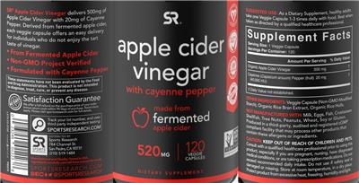 - SR Apple Cider Vinegar delivers 500mg of Apple Cider Vinegar with 20mg of Cayenne Pepper. Derived from fermented apple cider each veggie capsule offers an easy delivery for individuals who do not enjoy the tart taste of vinegar.From fermented apple cider Formulated with cayenne pepper Non-GMO project verified Manufactured and Quality Tested in USA. Ingredients carefully sourced from around the world. With cayenne pepperMade from fermented apple cider Certified VeganVegan.org Gluten free Not Manufactured With: Milk eggs fish crustacean shellfish tree nuts peanuts wheat soy or gluten.