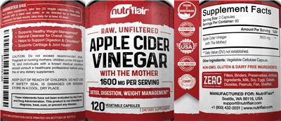 - Supports healthy weight managementNatural cleanser for overall healthHelps to support digestion & circulationSupports cartilage & joint health 1600 mg per serving With the mother Raw UnfilteredDetox digestion weight management Vegan & Vegetarian Made with Non-GMO Ingredients Non-GMO Gluten & Dairy free IngredientsZero fillers binders preservatives artificial ingredients milk soy eggs gelatin dioxides peanuts fish shellfish.