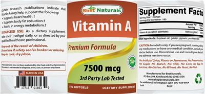- Certain research publications indicate that Vitamin A may help support the following:Supports heart health.Supports body fat reduction.Assists in energy metabolism. Premium formula 3rd party lab tested No artificial color flavor or sweetener no preservatives no sugar no starch no milk no corn no egg no lactose no gluten no wheat no yeast no fish.