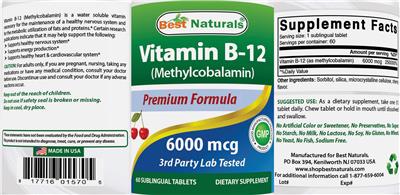 | Vitamin B12 | vitamin | 6000 | mcg | 250000 | Adults and children 4 or more years of age | 1 Sublingual Tablet(s) |