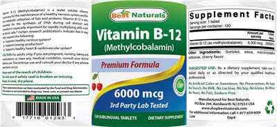 | Vitamin B12 | vitamin | 6000 | mcg | 250000 | Adults and children 4 or more years of age | 1 Tablet(s) |