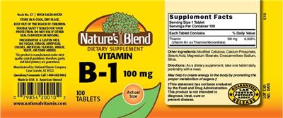 | Thiamine | vitamin | 100 | mg | 8333 | Adults and children 4 or more years of age | 1 Tablet(s) |
