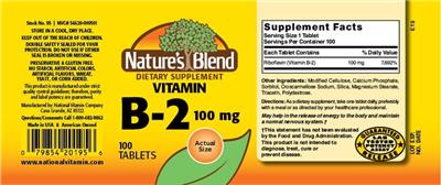 | Riboflavin | vitamin | 100 | mg | 7692 | Adults and children 4 or more years of age | 1 Tablet(s) |