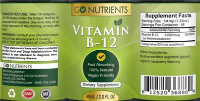 | Vitamin B12 | vitamin | 3000 | mcg | 50000 | Adults and children 4 or more years of age | 1.23 mL |