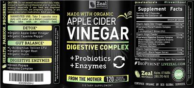 - Made with Organic Apple Cider Vinegar Certified organic by SCS Global Services.
