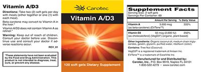 - Vitamin A/D3 does not contain Vitamin A as retinol.