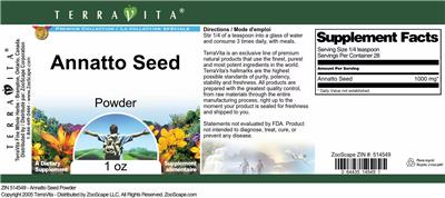 | Annatto seed powder | botanical | 1000 | mg | N/A | Adults and children 4 or more years of age | 0.25 Teaspoon(s) |