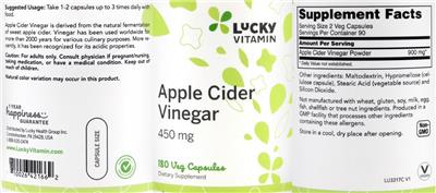 | Apple Cider Vinegar; Powder | botanical | 900 | mg | N/A | Adults and children 4 or more years of age | 2 Veg Capsule(s) |