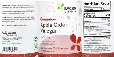 | Apple Cider Vinegar | botanical | 500 | mg | N/A | Adults and children 4 or more years of age | 2 Gummy(ies) |