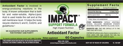 - Antioxidant Factor is involved in energy-producing reactions in the body. A known antioxidant that is both fat and water-soluble alpha-lipoic acid is used inside the cell and at the cell membrane level. It helps the body recycle vitamins C and E CoQ10 and glutathione. Contains no artificial colors flavors or preservatives; no wheat gluten milk eggs peanuts tree nuts soy crustacean shellfish or fish. Suitable for vegans.