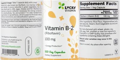 | Riboflavin | vitamin | 100 | mg | 7692 | Adults and children 4 or more years of age | 1 Veg Capsule(s) |