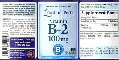 | Riboflavin | vitamin | 100 | mg | 7692 | Adults and children 4 or more years of age | 1 Tablet(s) |