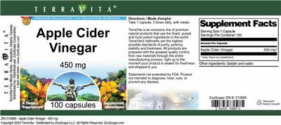 | Apple Cider Vinegar | botanical | 450 | mg | N/A | Adults and children 4 or more years of age | 1 Capsule(s) |