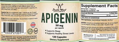 - Product Information: Apigenin is a bioflavanoid and antioxidant compound that occurs naturally in many different plants fruits and vegetables. Studies show it may have some benefit in supporting mood healthy stress levels and sleep. Made with NON-GMO ingredients Gluten Free 50 mg per capsule Supports sleep Supports healthy stress levels