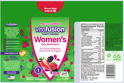 - Vitafusion Women's gummies are formulated to support the overall health and wellness of women. These little gummies pack a punch of essential vitamins minerals and natural fruit flavors that help support energy metabolism bone & immune health. No artificial flavors or sweetenersNo glutenNo high fructose corn syrupNo dairyNo synthetic FD&C dyes Gummy vitamins For energy metabolism bone & immune support Daily multivitamin To ensure quality and potency through expiration this dietary supplement is manufactured with higher active ingredient levels than the indicated amount per serving. Colors will darken over time. This does not alter the potency of the product. The ChefsBest Excellence Award is awarded to brands that surpass quality standards established by independent professional chefs. Evaluation funded by Church & Dwight Co. Inc.