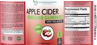 - Doctor Recommended Apple Cider Vinegar Gummies are made with The Mother and provides the same benefits of raw apple cider vinegar without the unpleasant after taste. This formula is also enriched with vitamins B9 and B12. Gummies are made with real apples. Free of wheat gluten milk salt starch artificial colors colors shellfish GMO's peanuts or sweeteners. Delicious apple taste! No artificial flavors! Gluten free vegan and taste great. Gluten free vegan and taste great.