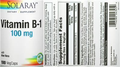 - Vitamin B-1 100 mg with Aloe Vera Discussion: Vitamin B-1 also known as Thiamine plays a necessary part in the body's pathway for converting carbohydrates into energy. Thiamine may help support skin brain cardiovascular and nervous system health.