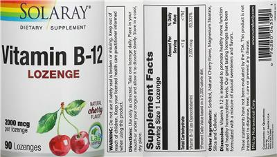 - Vitamin B-12 2000 mcg per lozenge Discussion: Vitamin B-12 is intended to promote healthy nerve function and healthy homocysteine levels. Our great tasting lozenges have been formulated with a mixture of natural sweeteners and flavors.