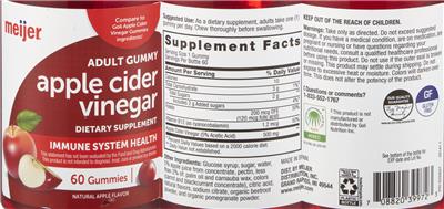 | Apple Cider Vinegar | botanical | 500 | mg | N/A | Adults and children 4 or more years of age | 1 Gummie(s) |