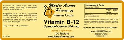 | Vitamin B12 | vitamin | 500 | mcg | 8333 | Adults and children 4 or more years of age | 1 Tablet(s) |
