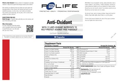 - P2Life's Anti-Oxidant formula contains 23 antioxidants and other nutrients to help protect against the damage caused by free radicals.*Anti-oxidants are substances that may protect your cells against the damaging effects of free radicals. Free radicals result from our own metabolic processes as well as the air we breathe and radiation. Free radicals can damage cells and may play a role in cancer heart problems and other diseases.* PROTECTING HEALTH; PROMOTING PERFORMANCE WITH 23 ANTI-OXIDANT NUTRIENTS TO HELP PROTECT AGAINST FREE RADICALS* Contains plant extracts therefore the color of the capsule contents may vary slightly form batch to batch. PEEL HERE More Information:For more information about the product and its ingredients please visit our website at www.P2Life.com or scan this code with your Smart Phone.{QR Code}