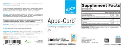 - Appe-Curb contains key amino acids to support the biosynthesis of neurotransmitters involved in appetite control carbohydrate or fat cravings and mood. Chromium is present to support healthy glucose metabolism and support food intake regulation. Formulated to exclude: Wheat gluten yeast soy animal and dairy products fish shellfish peanuts tree nuts egg ingredients derived from genetically modified organisms (GMOs) artificial colors artificial sweeteners and artificial preservatives. Vegetarian Caps Combatting cravings naturally