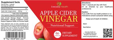 | Apple Cider Vinegar Extract | botanical | 500 | mg | N/A | Adults and children 4 or more years of age | 1 Capsule(s) |