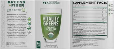 - Greens + Fiber For a better life! Vitality Greens was designed with certified-organic ingredients to revitalize your body with a natural boost of wholesome Vitamin C-rich superfood fiber antioxidants prebiotics and enzymes to support healthy digestion and a healthy immune system to ensure that you're giving your body what it craves. Made with Non-GMO ingredients Gluten free Vegan Star-K (Kosher) Organic Superfood Drink 4g fiber per serving Immune support Healthy digestion Energy